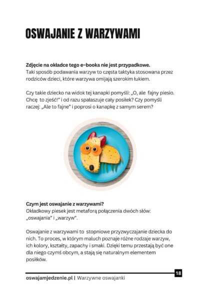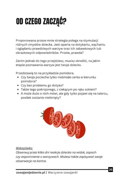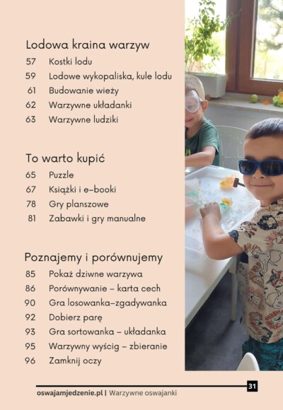 Znajdziesz ogromny zbiór pomysłów na wspólne warzywne eksperymenty, gry i zabawy. Możesz je potraktować jako inspiracje lub skorzystać z załączonych szablonów. Przedstawiam tu także książki, gry i zabawki, które wspaniale uzupełniają strategię oswajania opisaną w tym e-booku.